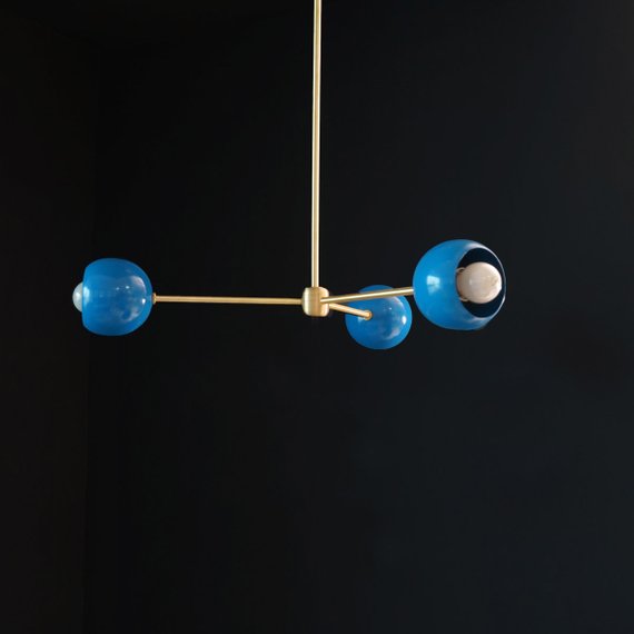 3 Light Blue Ball Sputnik Chandelier Light Fixture