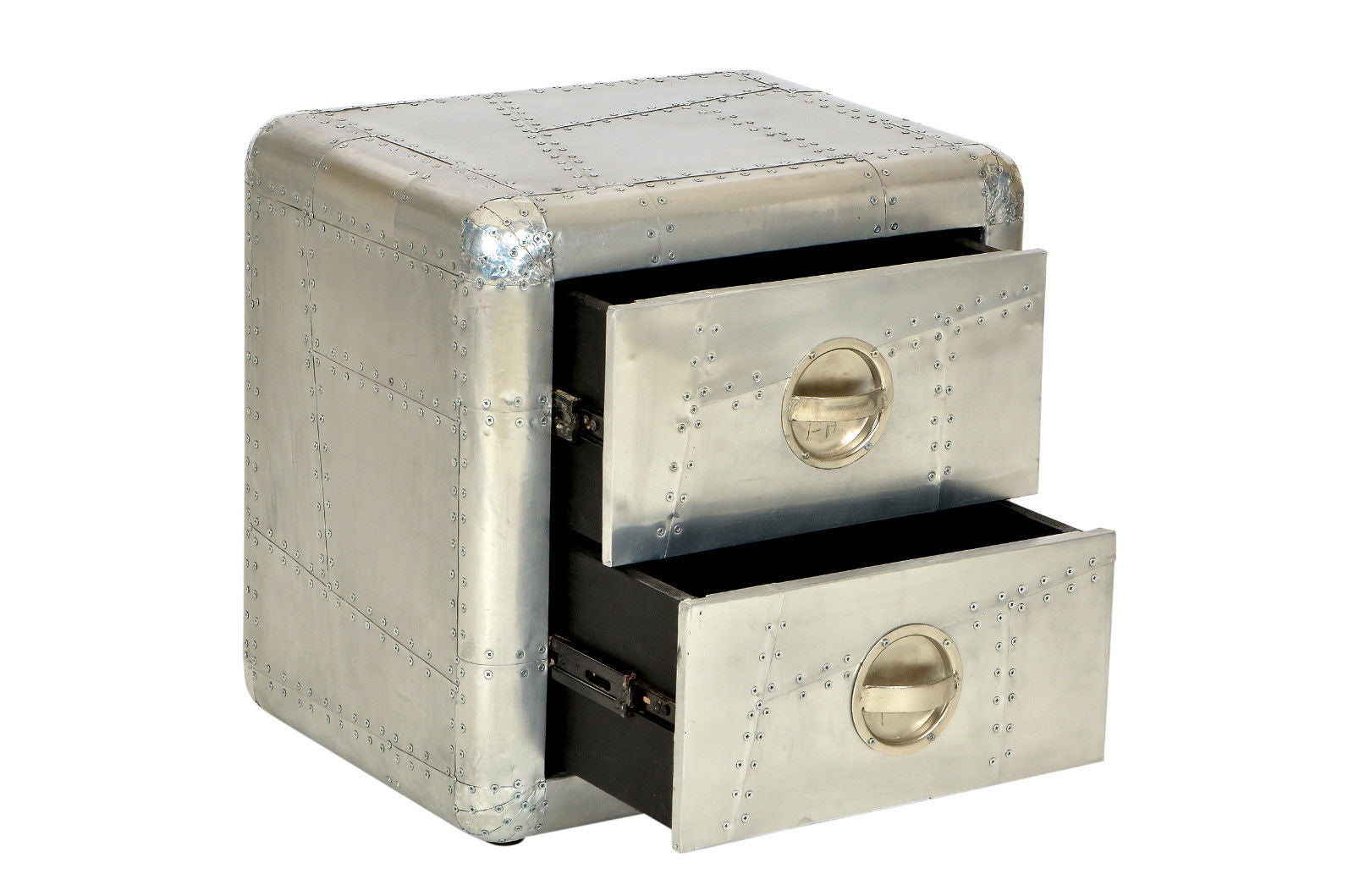 This high-quality Aviator Coffee Table can be placed in any room. it can also be used as a side table, a bedside table, an end table, etc. This aircraft coffee table has two drawer for small items like keys, notepads, pens, and other knick-knacks. The tabletop can be used to place food or drinks or to display decorative objects like photo frames, or even potted plants. This airmen coffee table is made of solid wood and its surface is clad with a patchwork of polished aluminium panels, accented with exposed steel screws, which makes it extremely durable. Smooth edges and the retro drawer handle give the aviator coffee table a unique look.