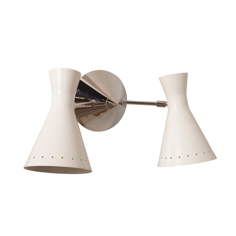 This Wall Mount Lamp features Natural Brass and Cream White enamel. This lamp's design carries influence from Scandinavian, Danish, French, and Italian Mid-Century Modernism, creating a strong visual statement with its distinctively architectural brass fittings. Place on any wall that needs directional or task lighting, from living room to office to bedroom. customization on this lamp is available so please contact us for any customization or custom lighting.