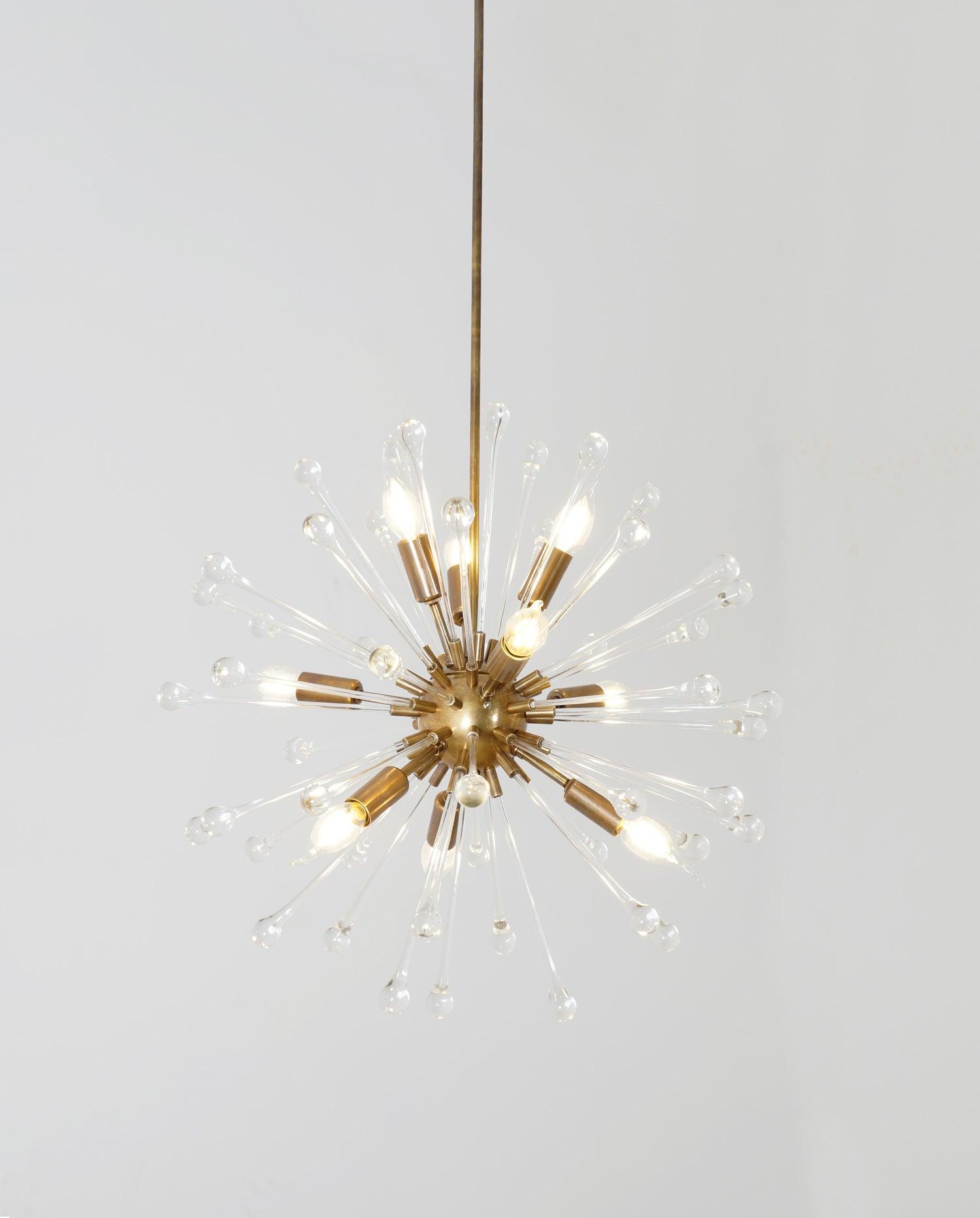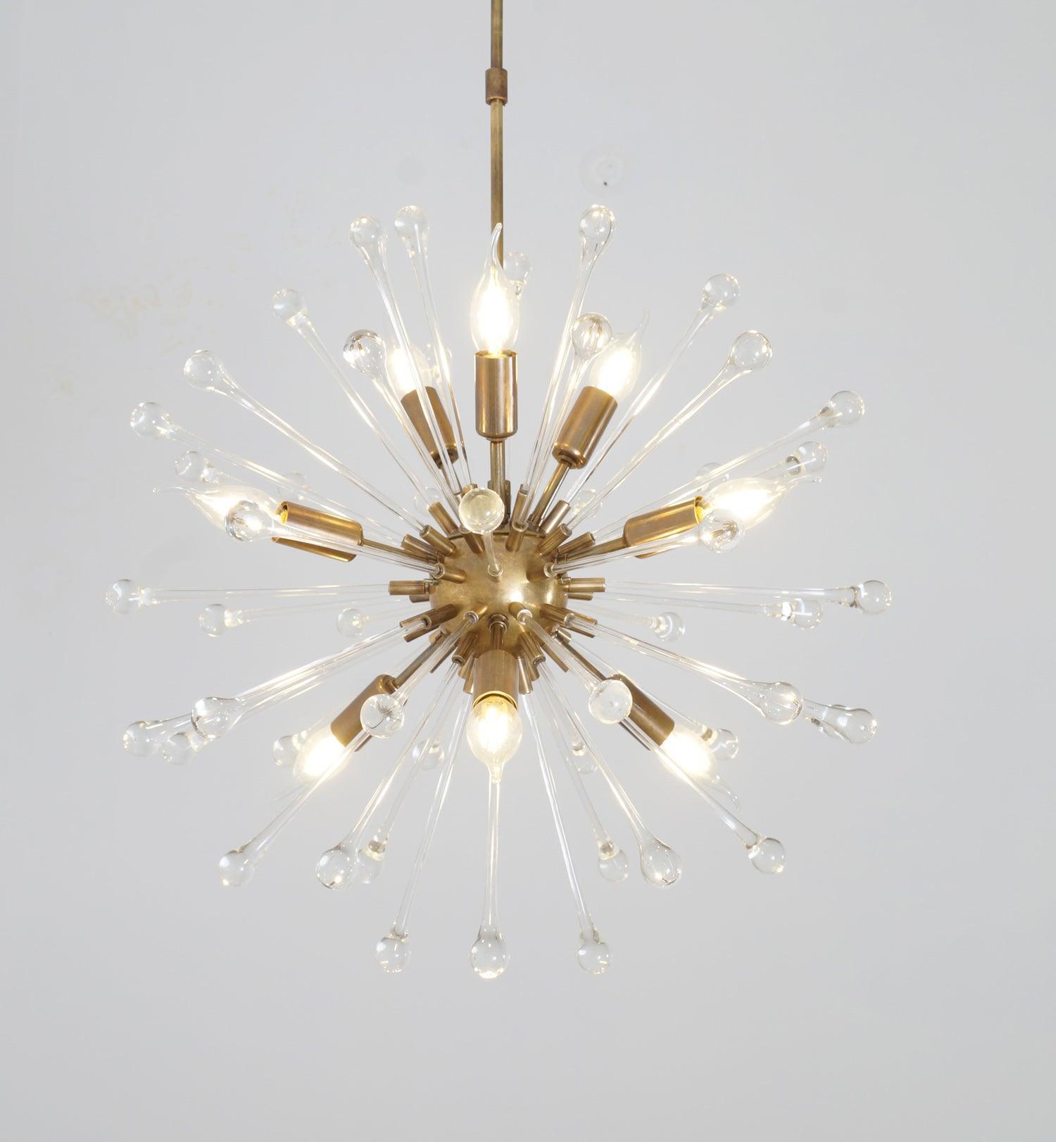 A beautiful brass and blown glass chandelier. 9 Lights light Modern Brass Sputnik Starburst glass Chandelier Light Fixture.