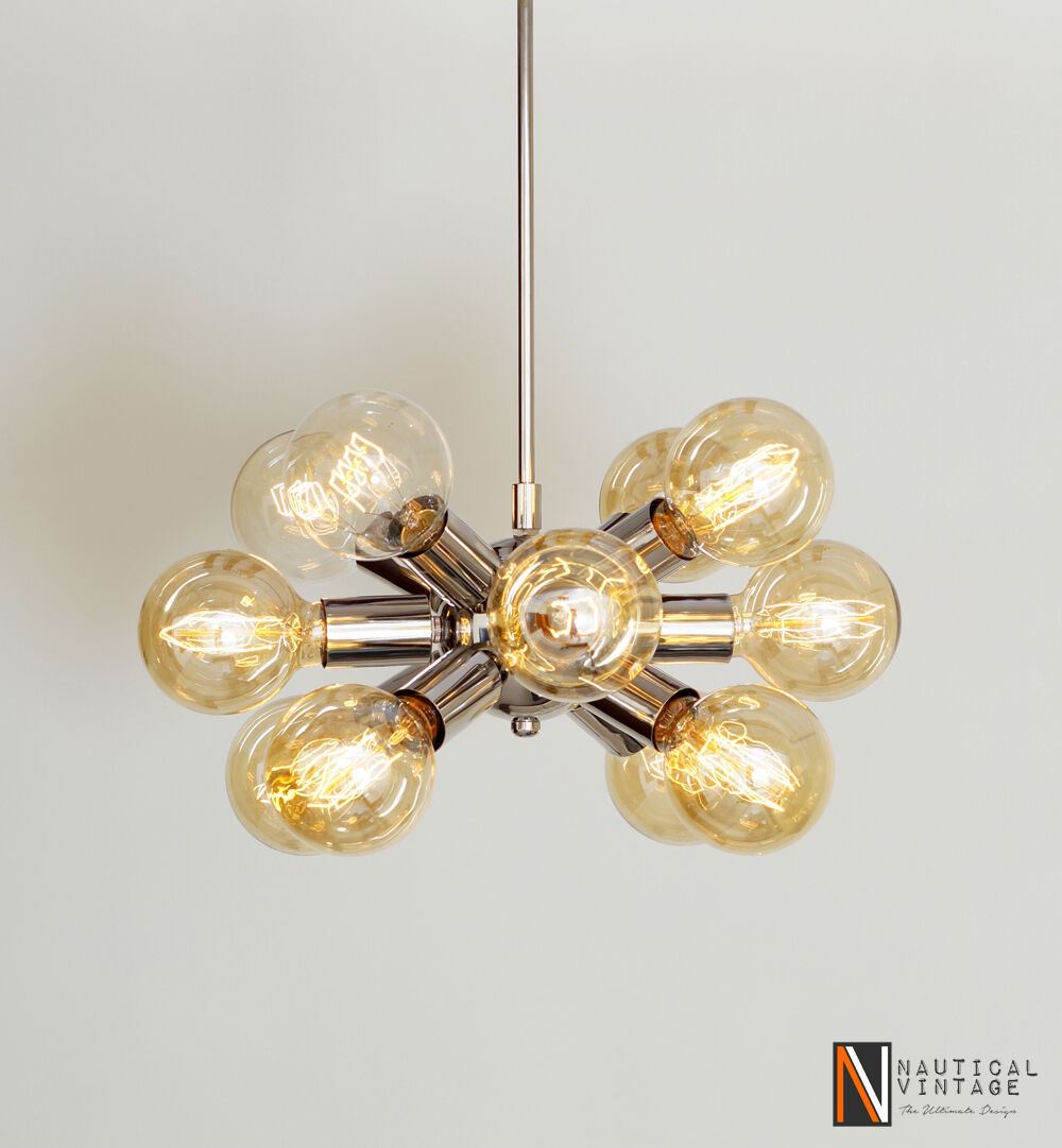 Mid Century Modern style chrome Brass Sputnik atomic chandelier starburst light Fixture. This starburst light fixture is made with UL approved parts.