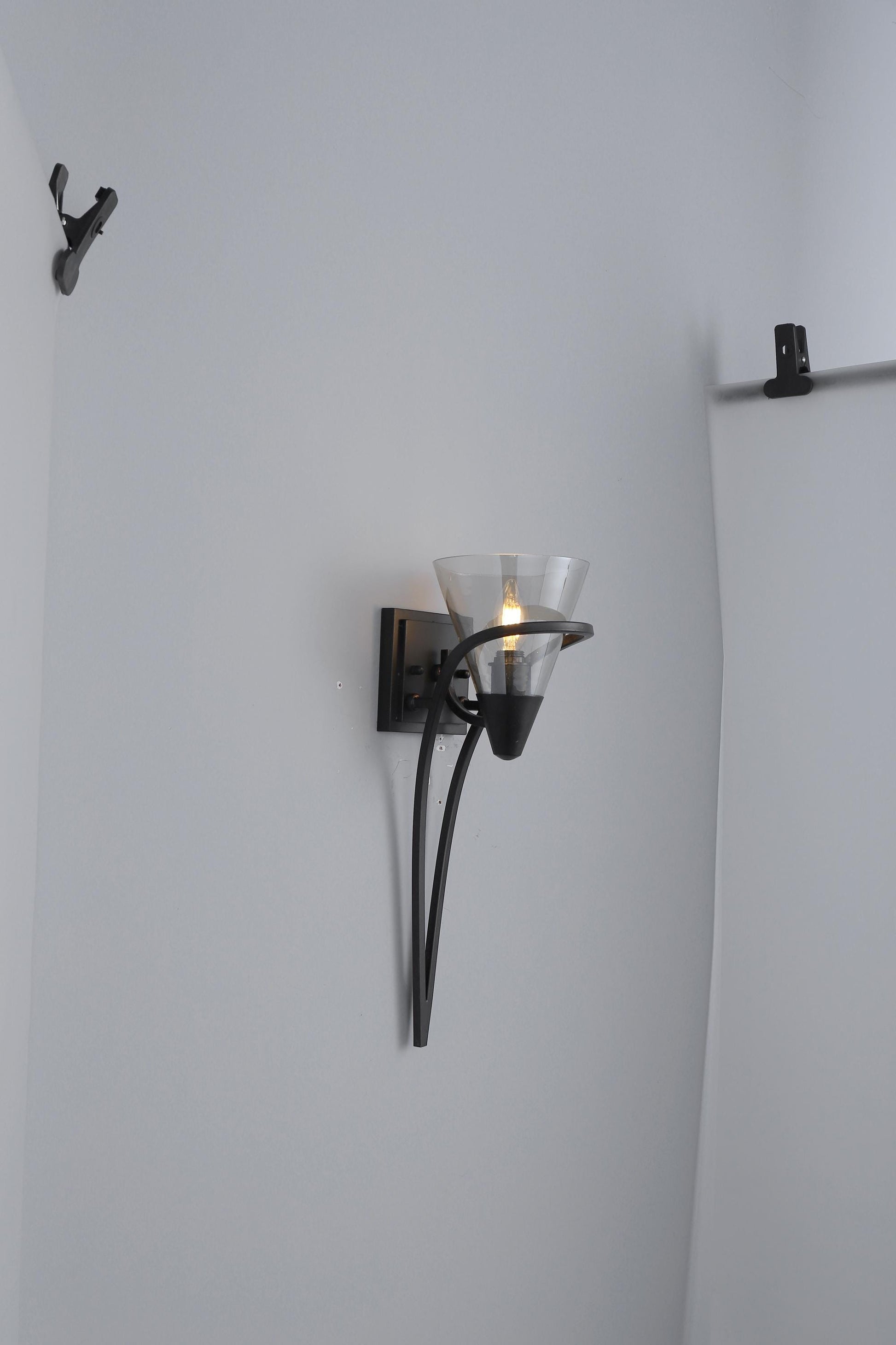 Iron + Glass Wall Sconce – Stylish Black Wall Lamp for Modern Spaces