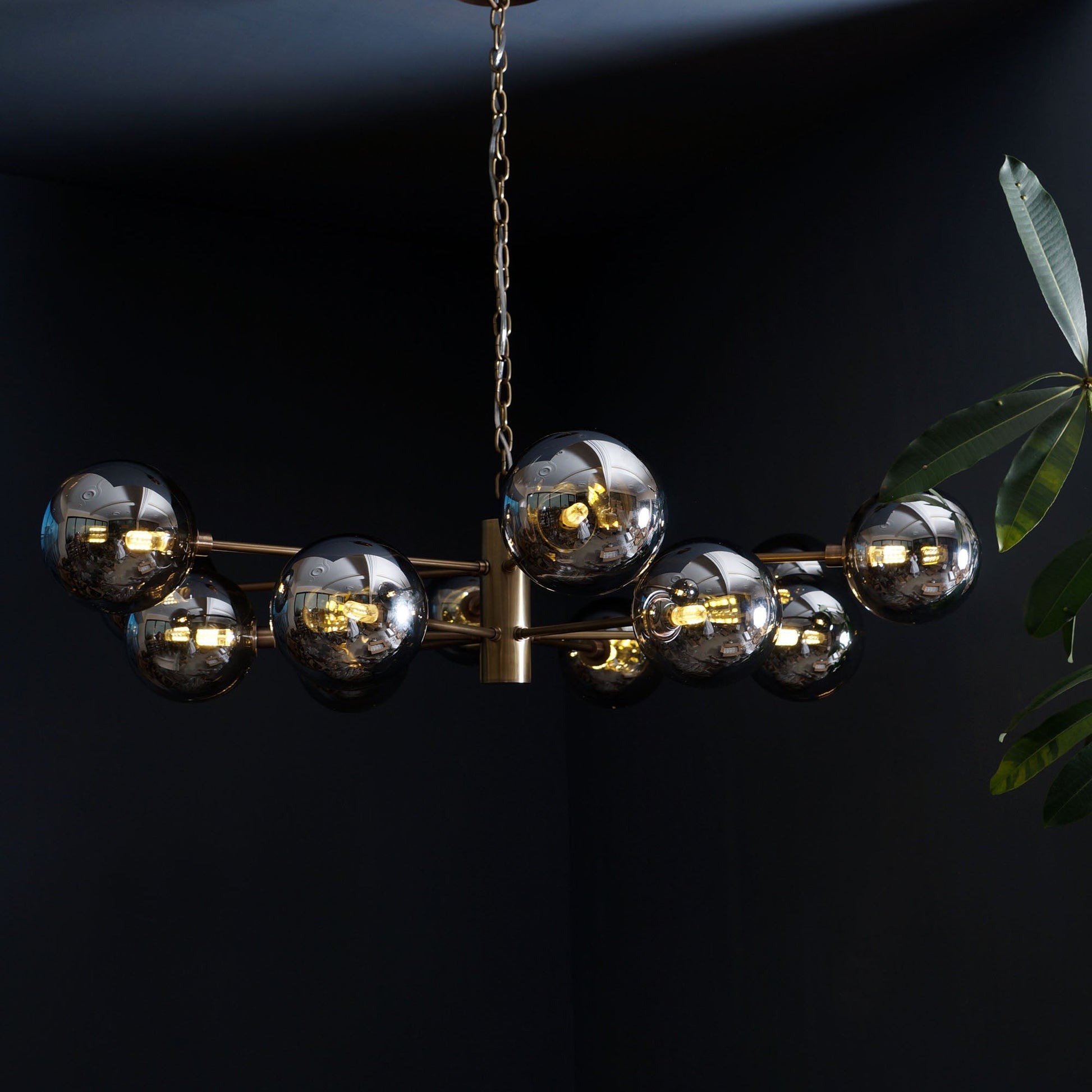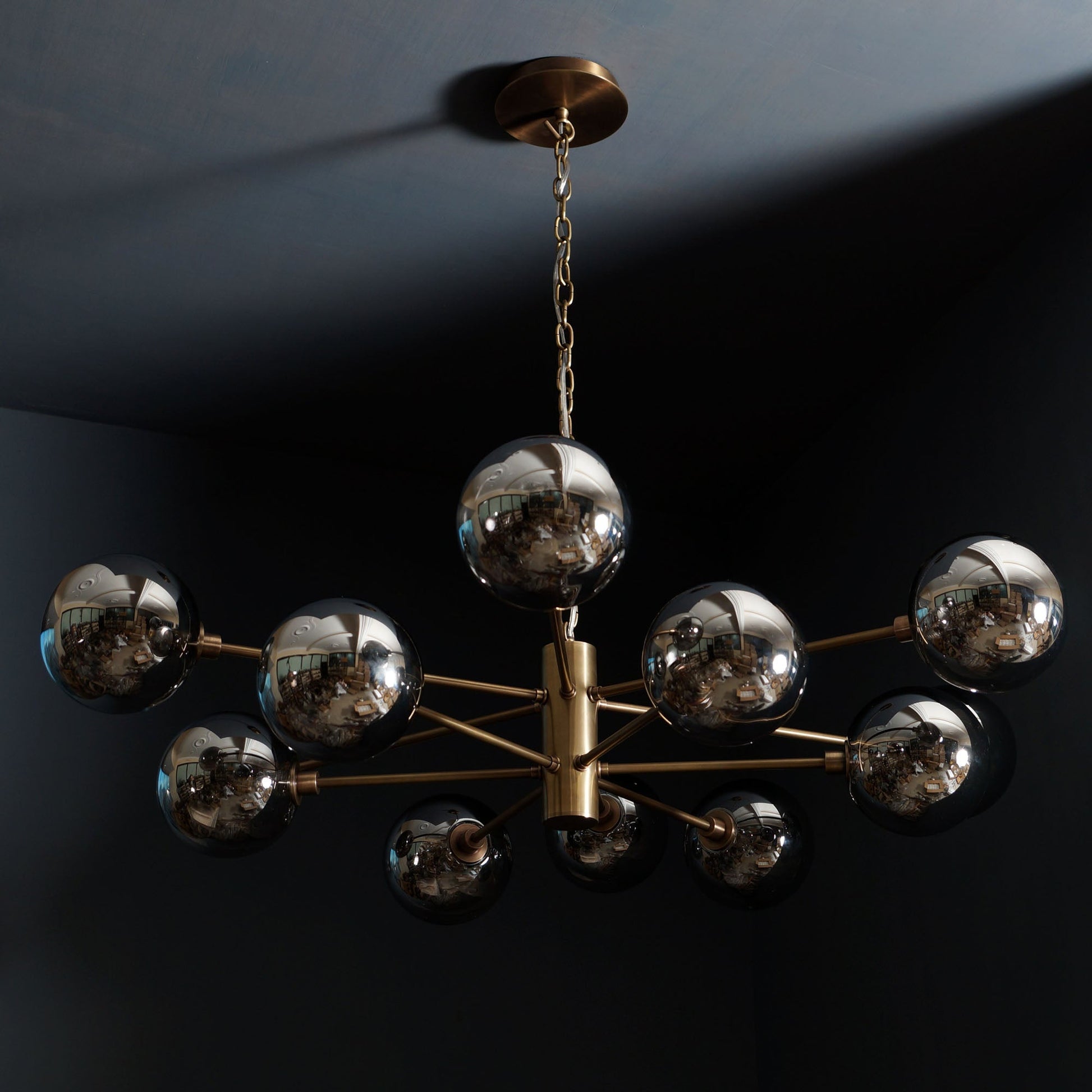 The irregular symmetry of the design in combination with the mercury glass spheres almost makes this feel like something mother nature conceived. With 12 lights it provides plenty of wattage over a large table.