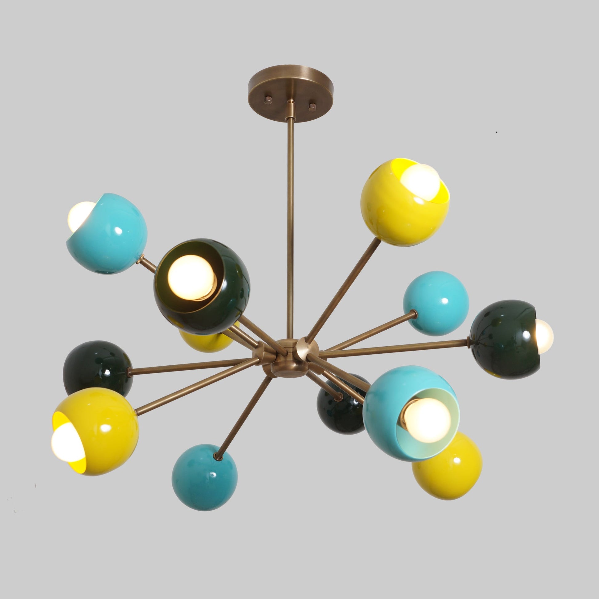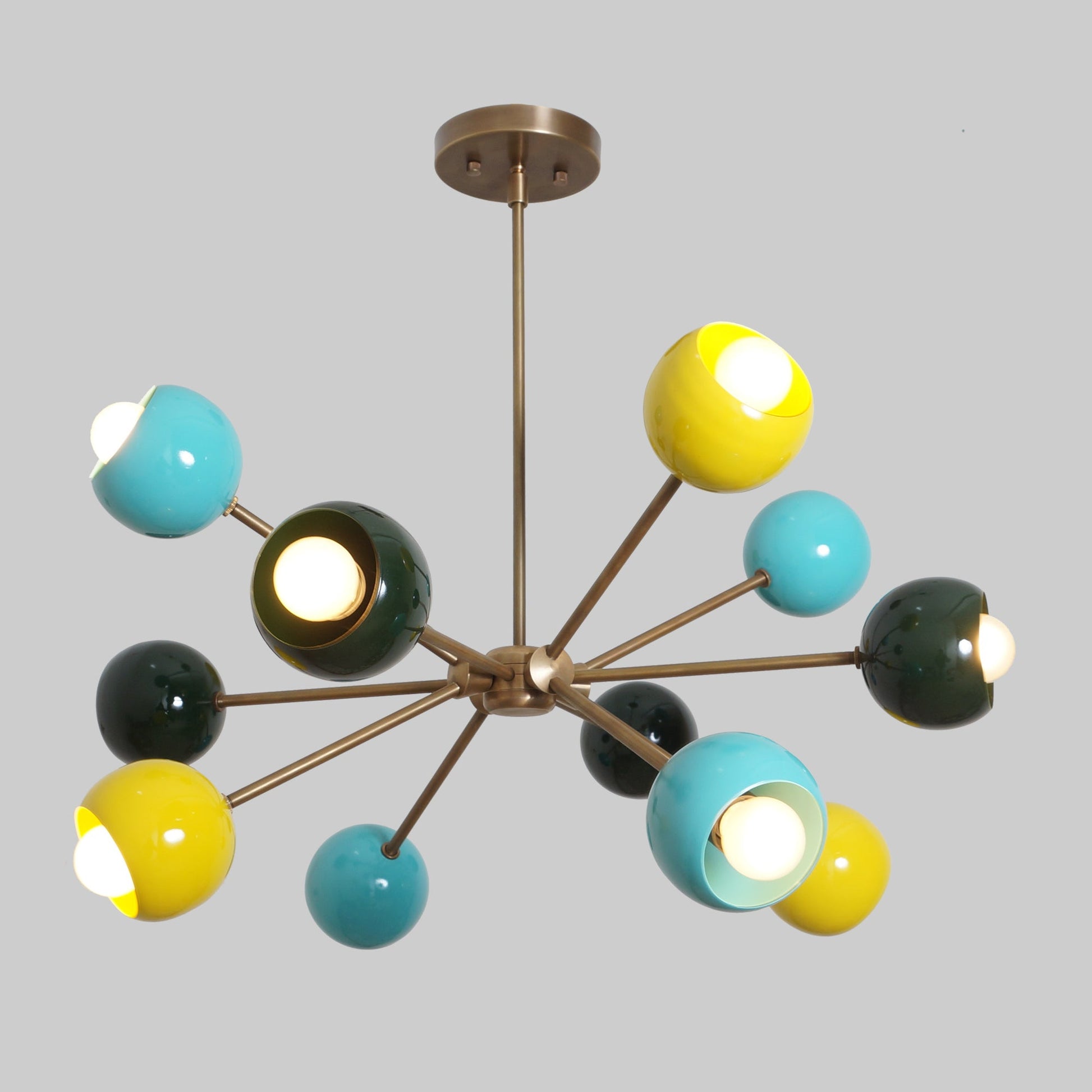 Mid Century Multicolor 12 Arm Sputnik Chandelier