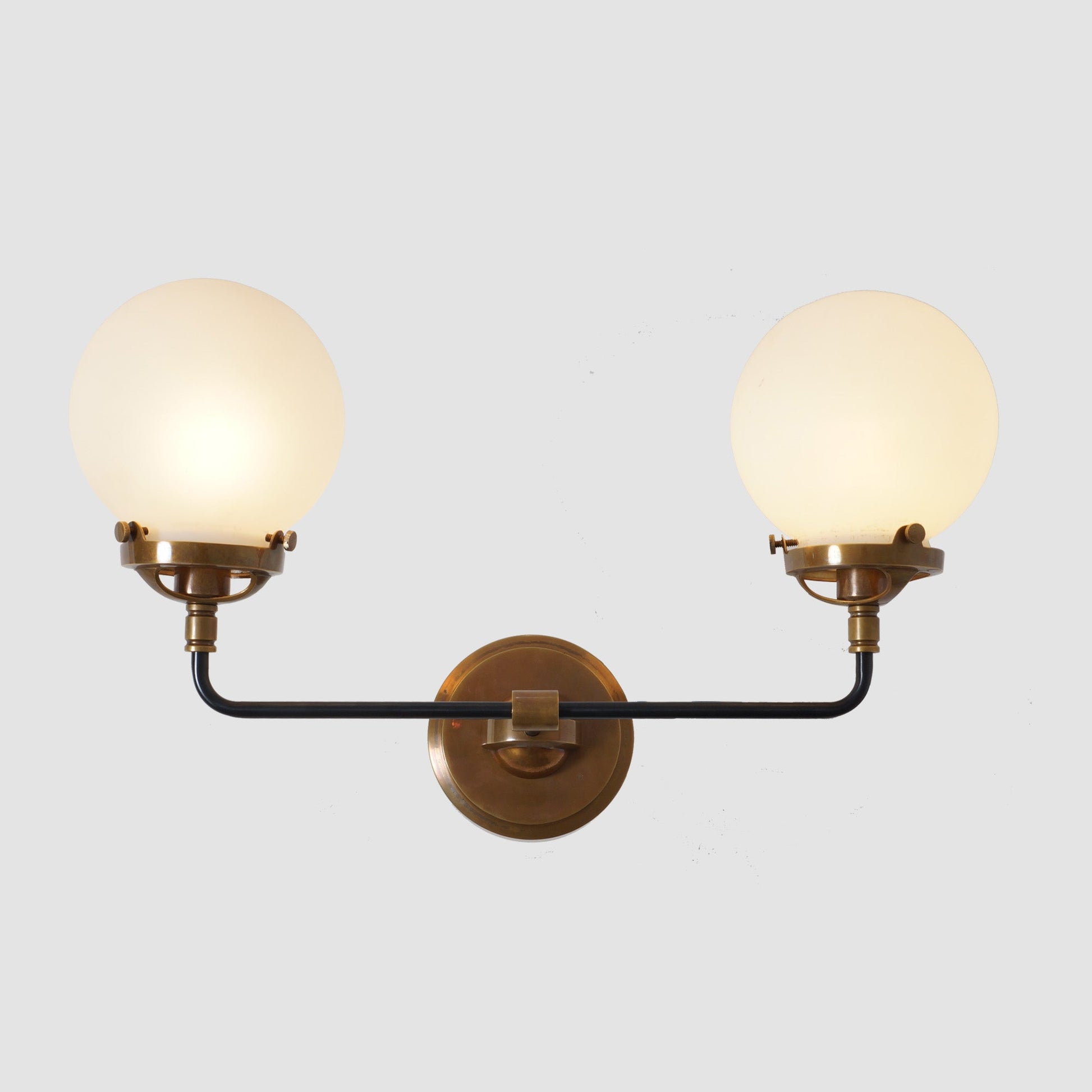 Mid Century Style Modern Brass Double Globe Wall Sconce