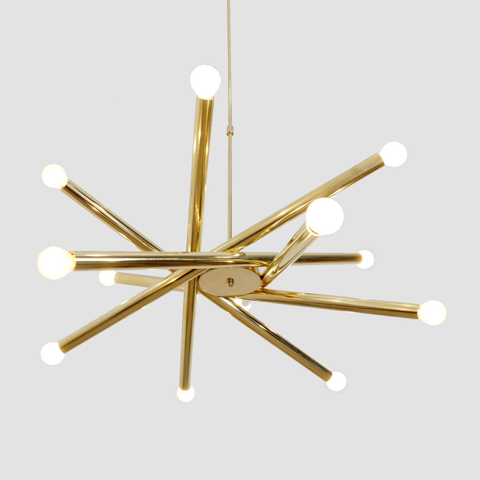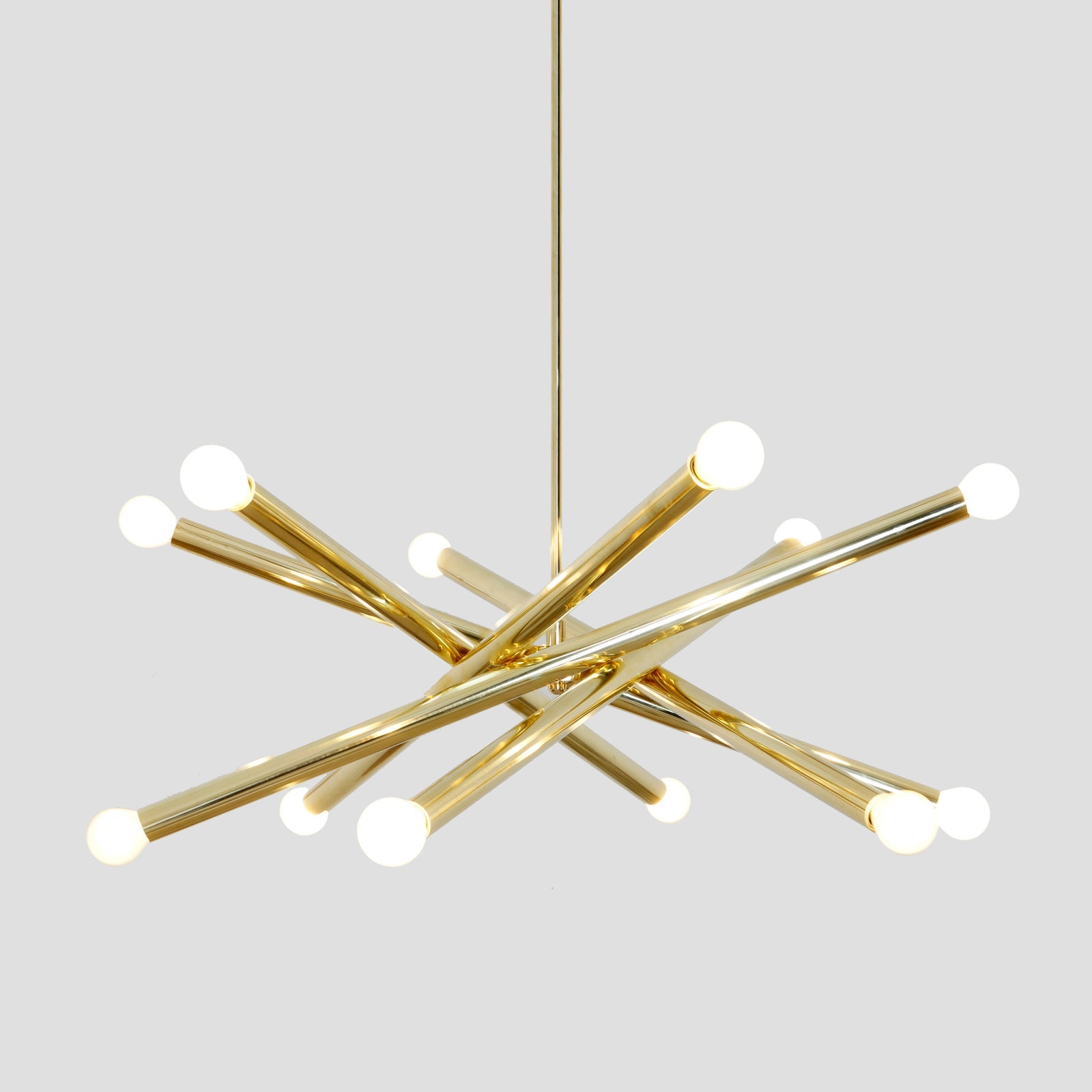 SPIRAL MODERN BRASS 12 LIGHT CHANDELIER FIXTURE - POLISHED BRASS