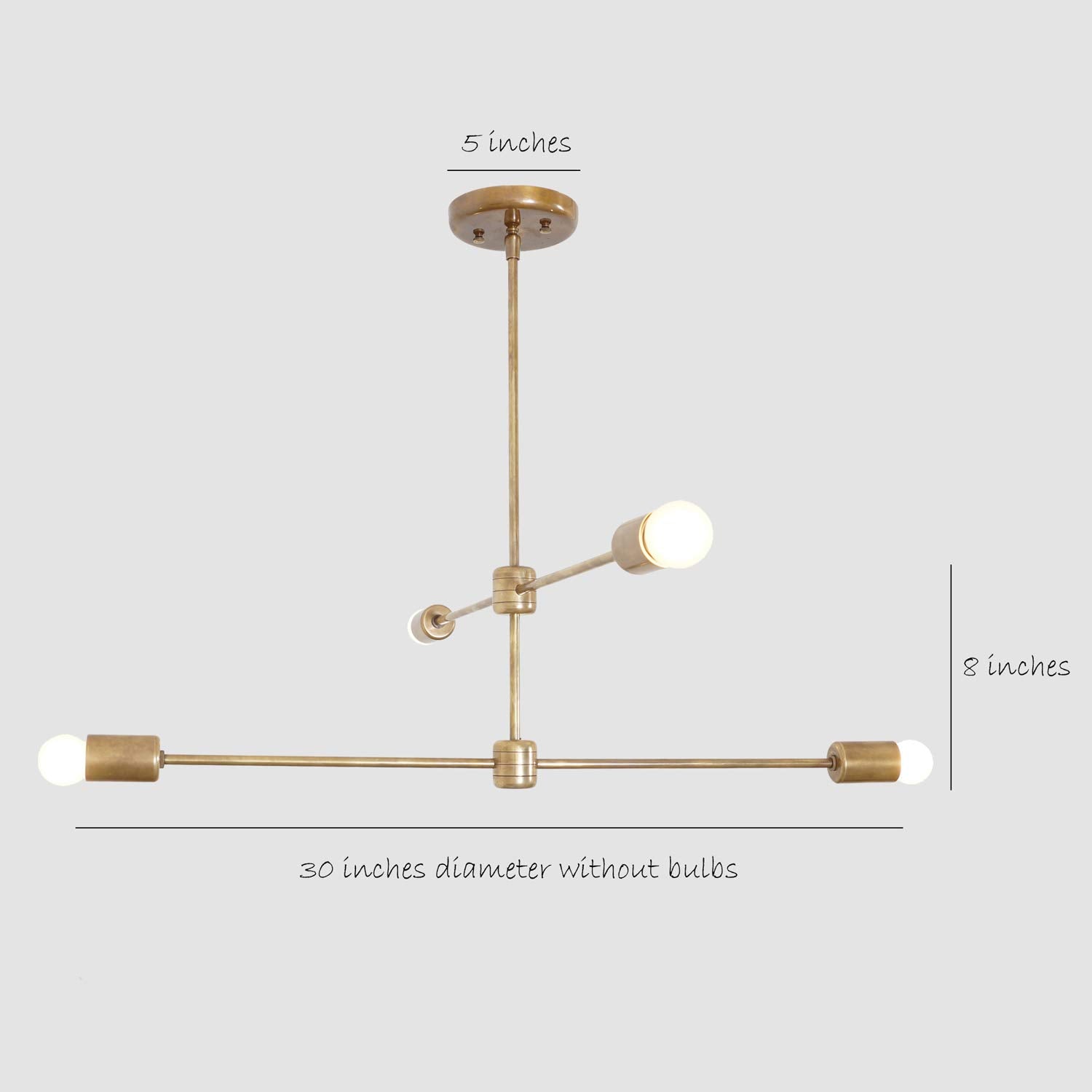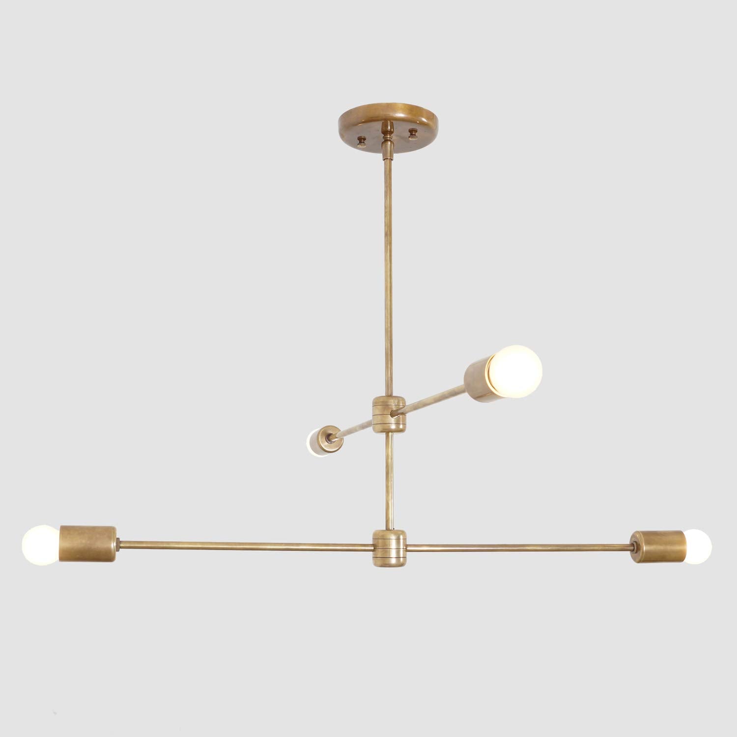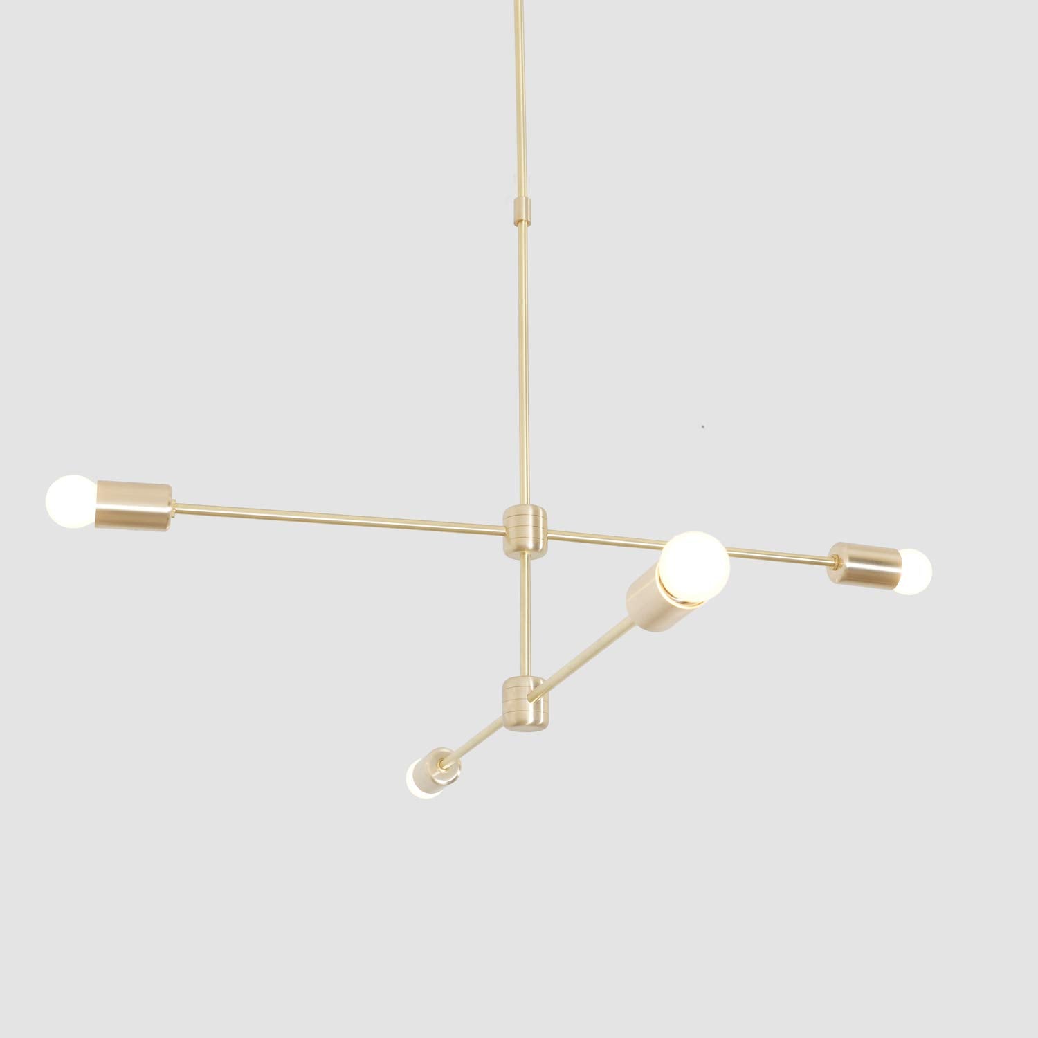 This bold modern brass 4 arm chandelier is inspired by retro sputnik lights. Vintage inspired 4 light sputnik chandelier ready to hang in your kitchen, bathroom, hall, mud room or foyer.