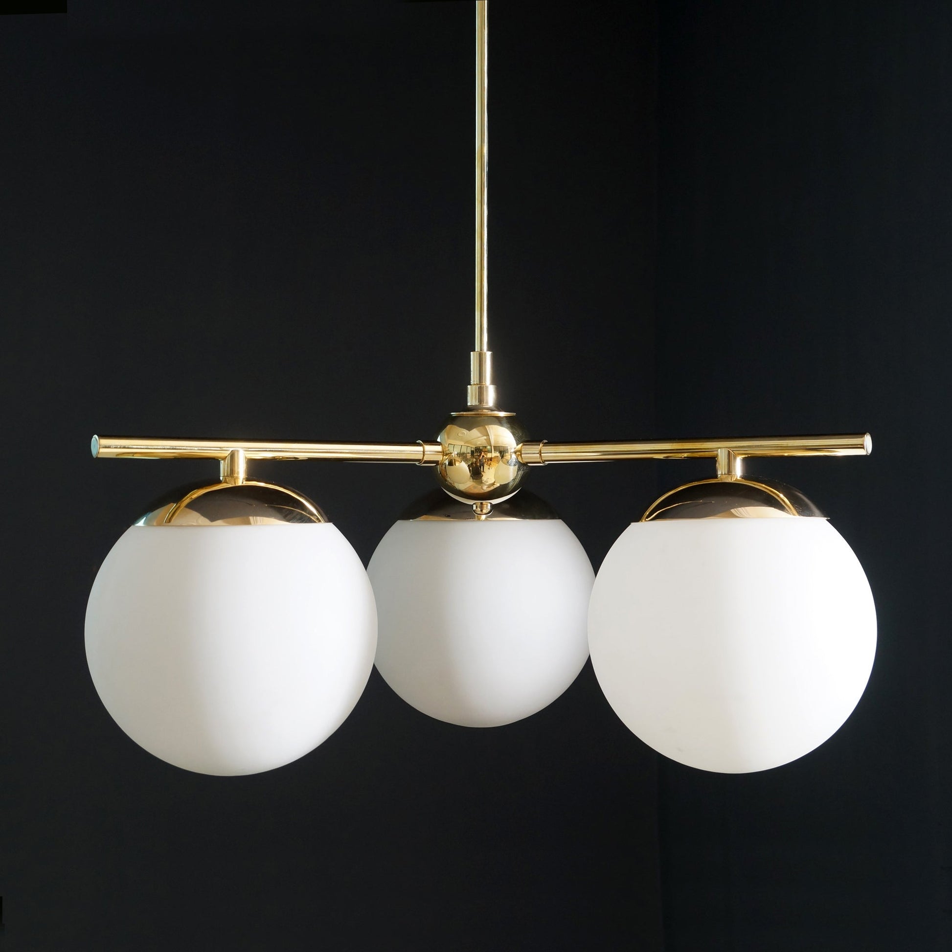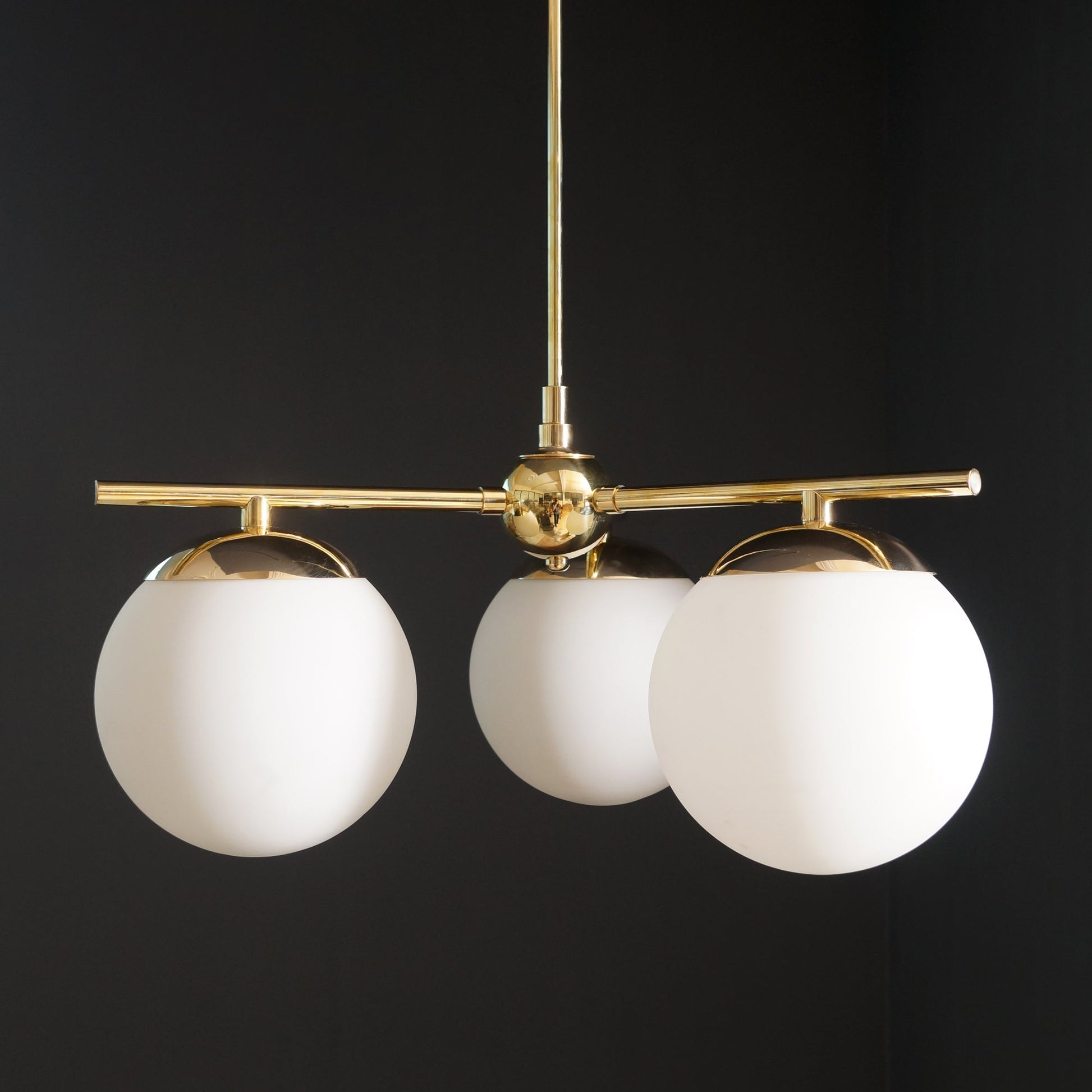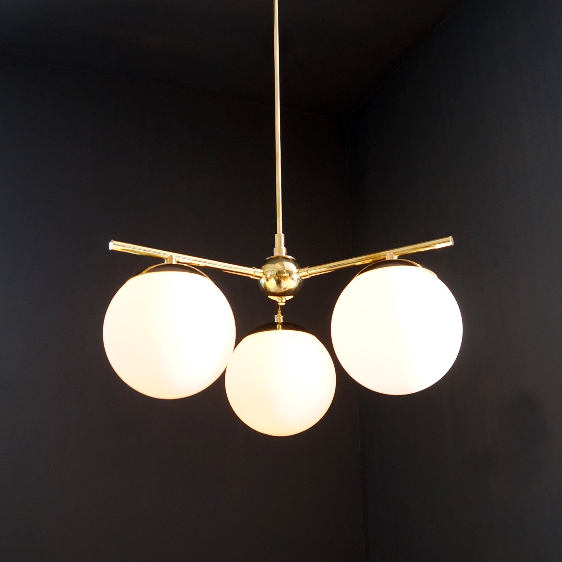 Modern Brass 3 Glass Sphere Globe Chandelier 34"D
