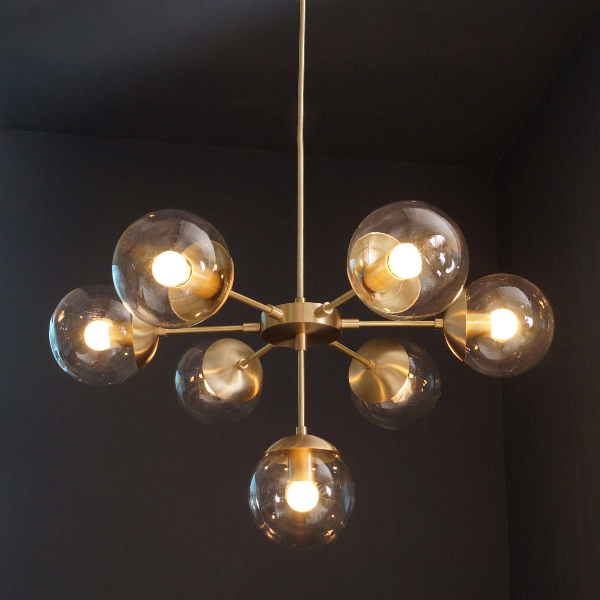 Beautiful Mid Century Style inspired 7 lights Modern Brass globe Chandelier Light Fixture.