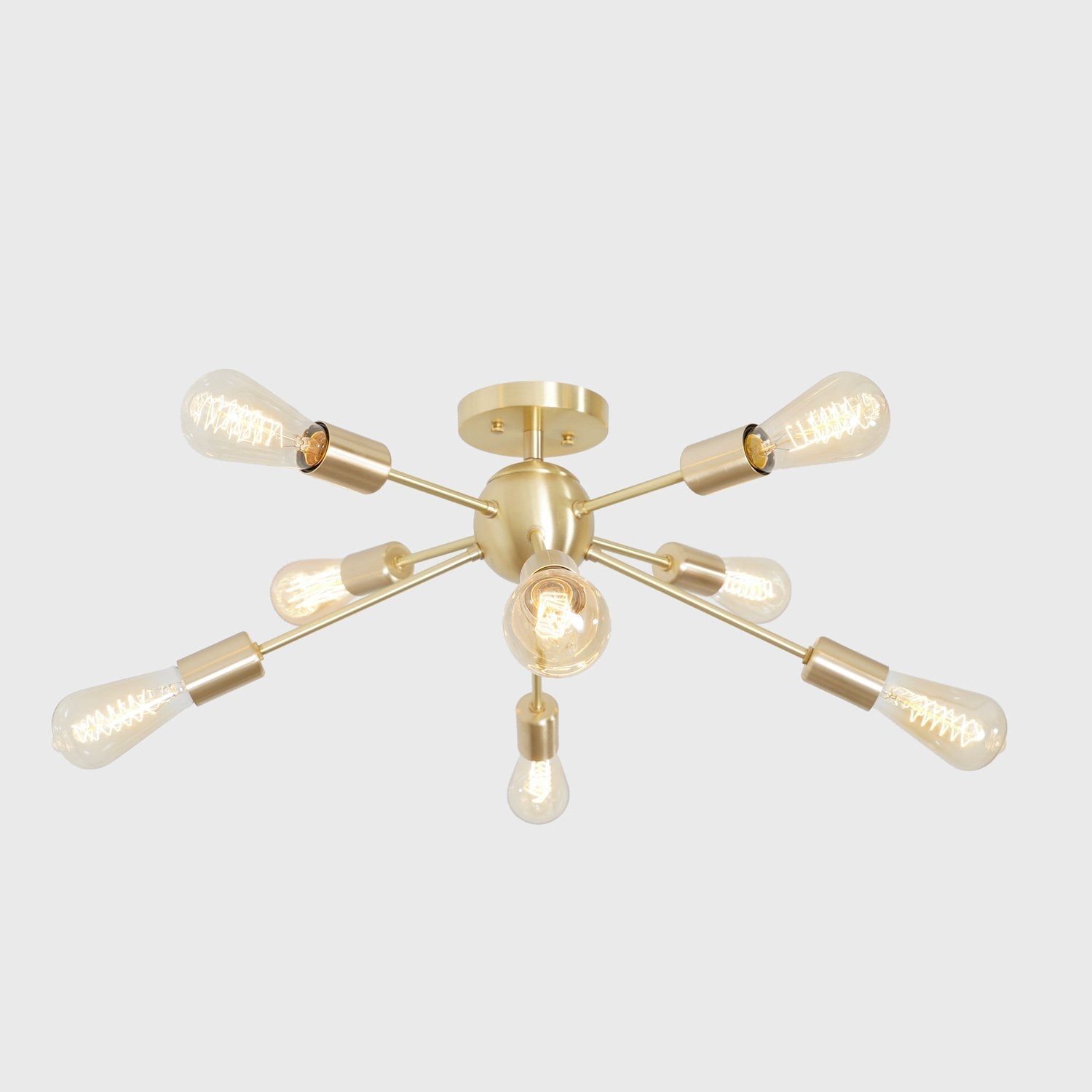 Modern Brass 8 Arm Light Sputnik Flush Mount Chandelier Light Fixture.