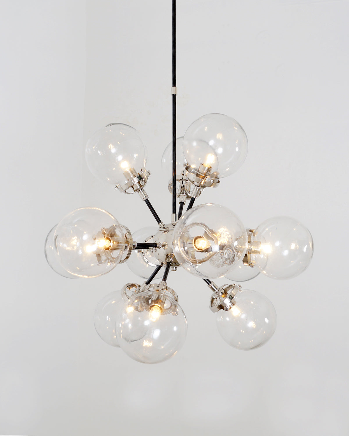 Bistro Globe Glass Ball Industrial Inspired Chandelier Ceiling Light with 12 glass balls.