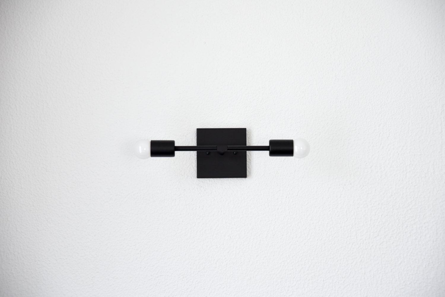 Stunning 2 bulb wall sconce in brushed brass, matte black or polished nickel. Perfect for areas that need more light like bathroom vanities.