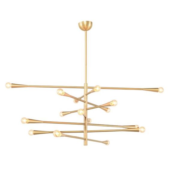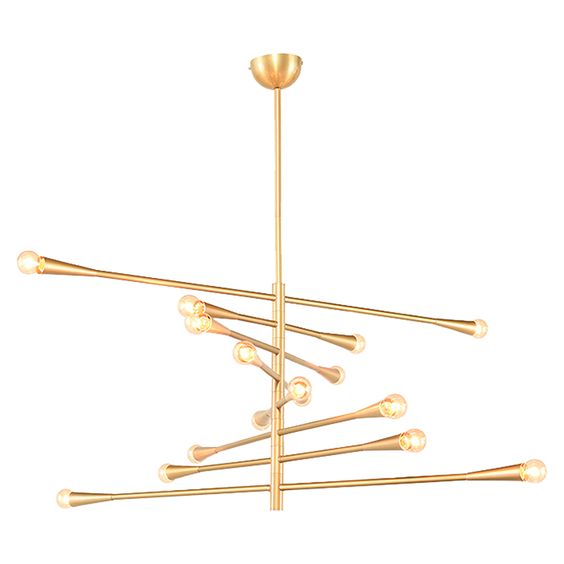 Graceful repetition of linear form defines the Orion 8 pendant sputnik chandelier. Featuring 8 brushed brass adjustable arms with sockets. the Orion can be configured to suit any design application. Fanned, perpendicular, rounded, the creative possibilities are limited only by the imagination.