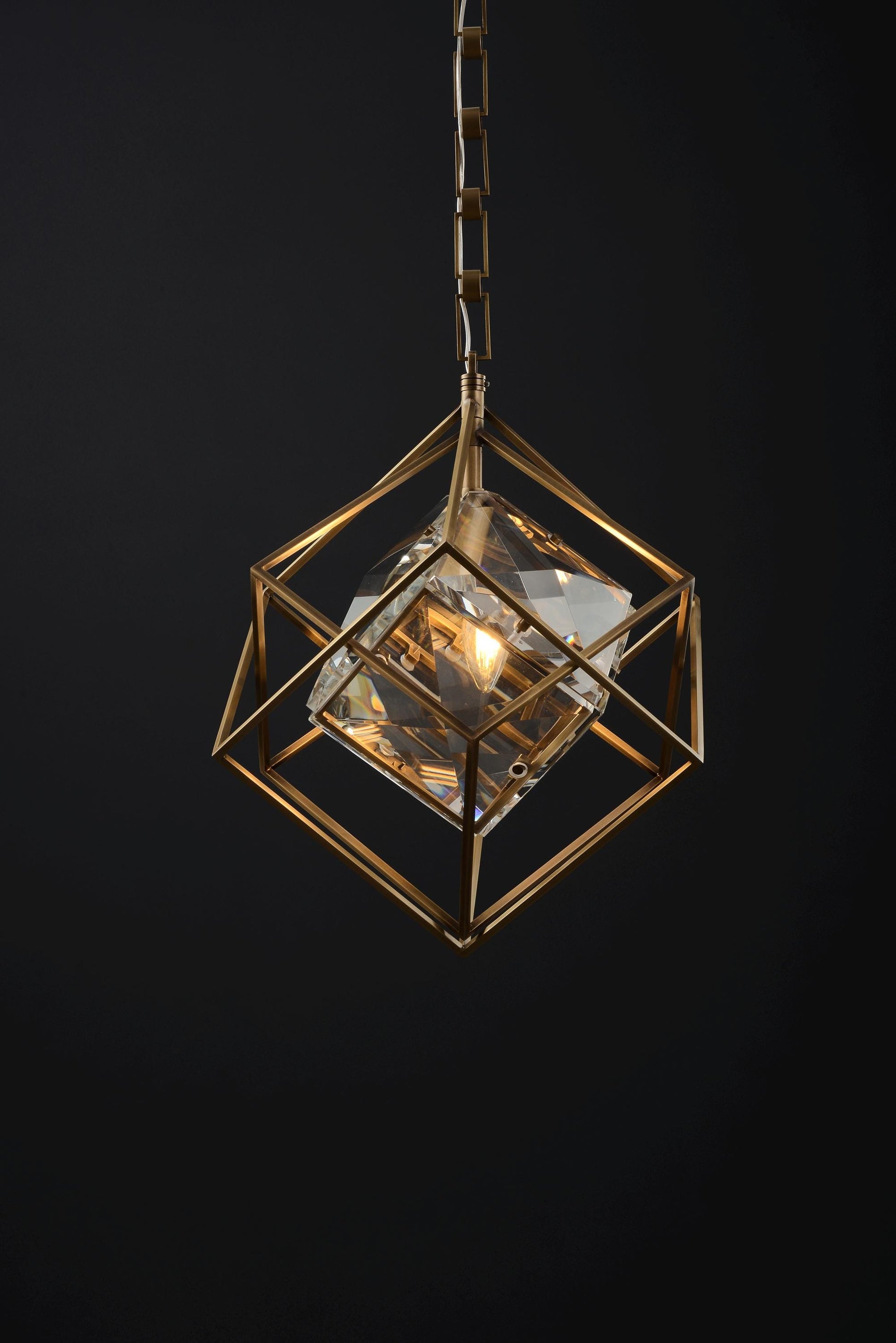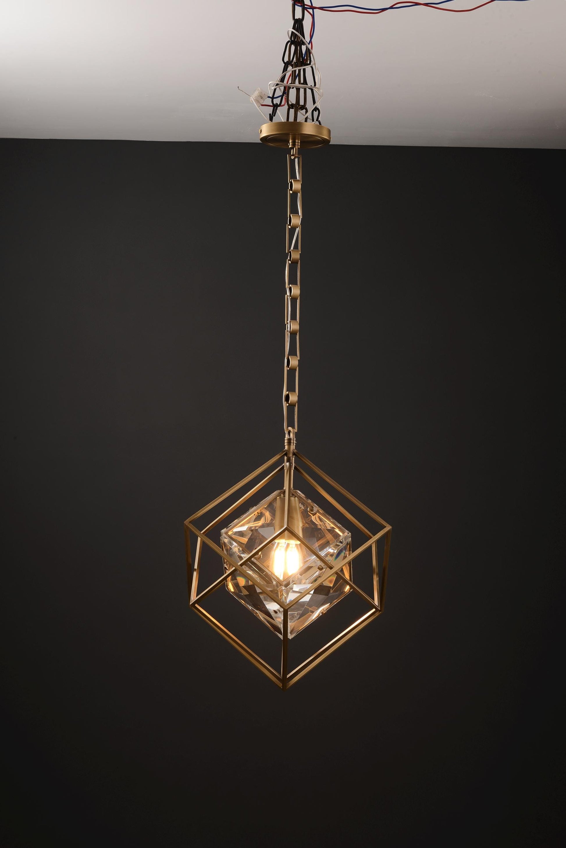 Refined Single-Hanging Bronze and Copper Chandelier | Modern Bronze Chandelier with Vintage Crystal Accents