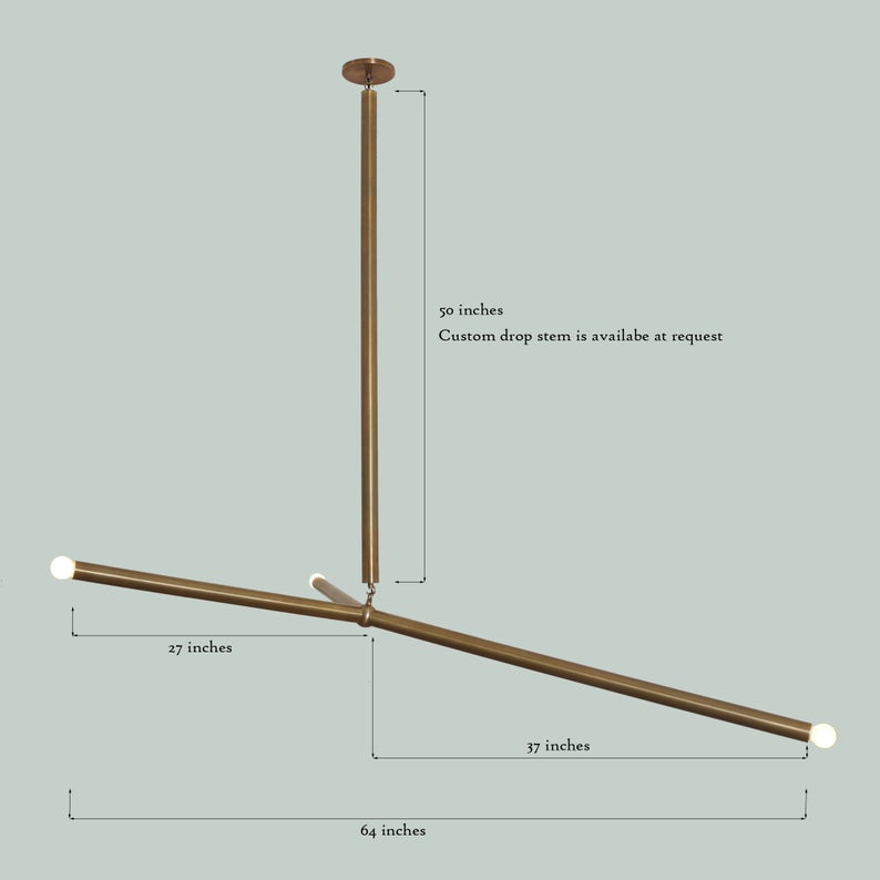 The Slingshot Chandelier exudes modern form and function. Its artfully suspended arms can be angled up or down from its central, spherical base. Innovative weights have been positioned within each socket that can be adjusted to affect the angle of the arms for different positions.