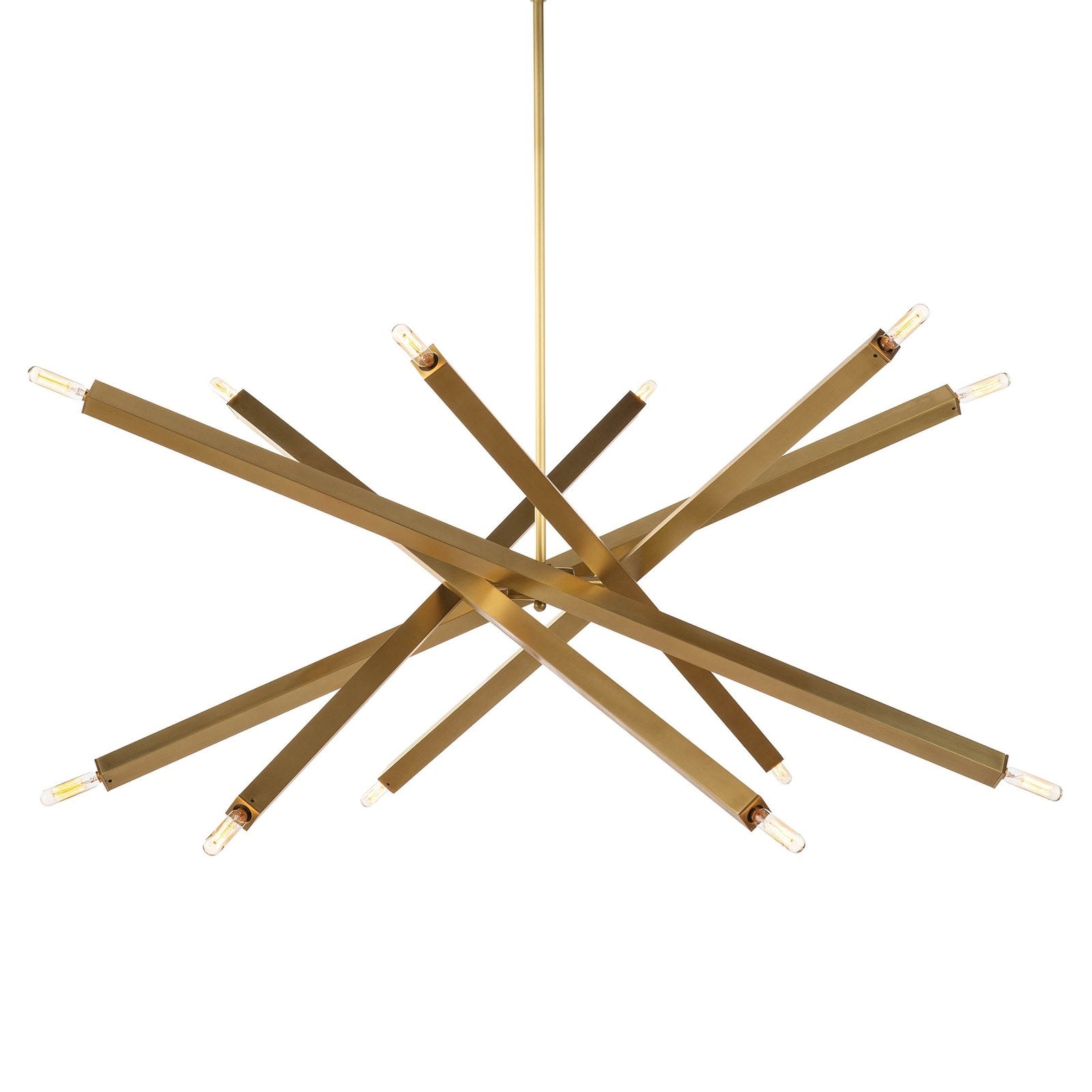 Contemporary cool: Sleek metal rods seemingly balance in this air. Clean lines and subtle design details come together making this chandelier not only handsome but versatile. Doozie Lighting is committed to making high quality, handmade lighting at a palatable price!