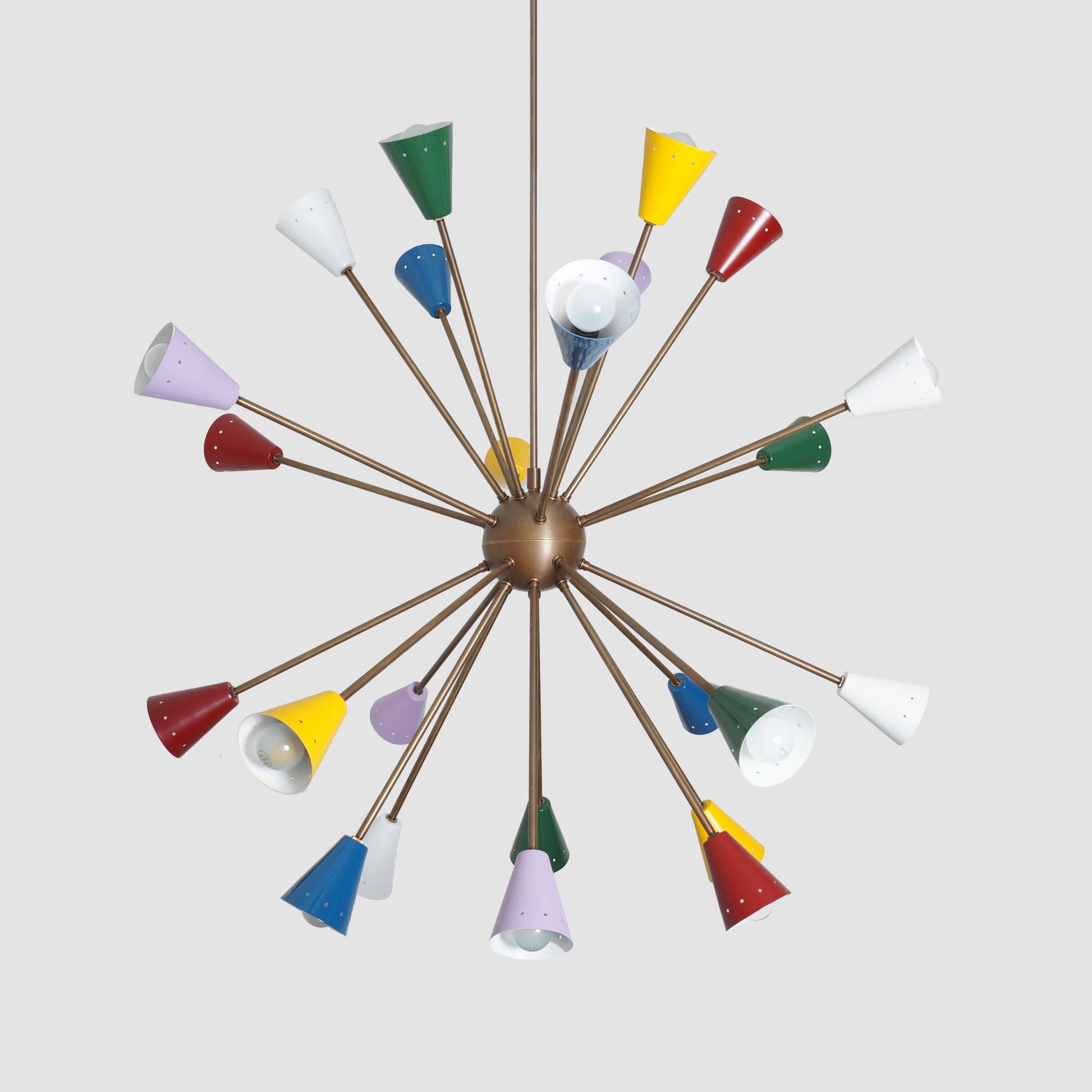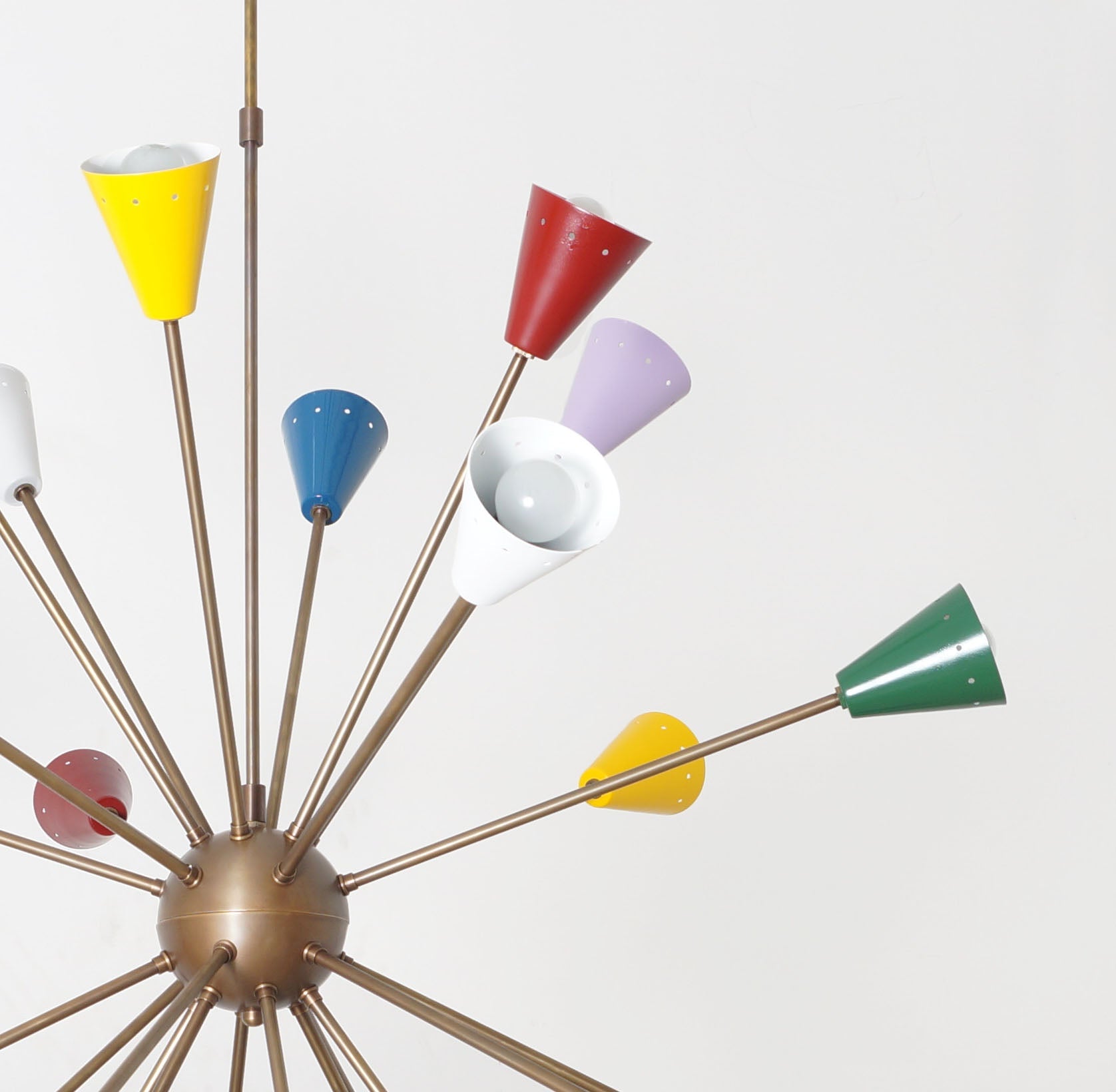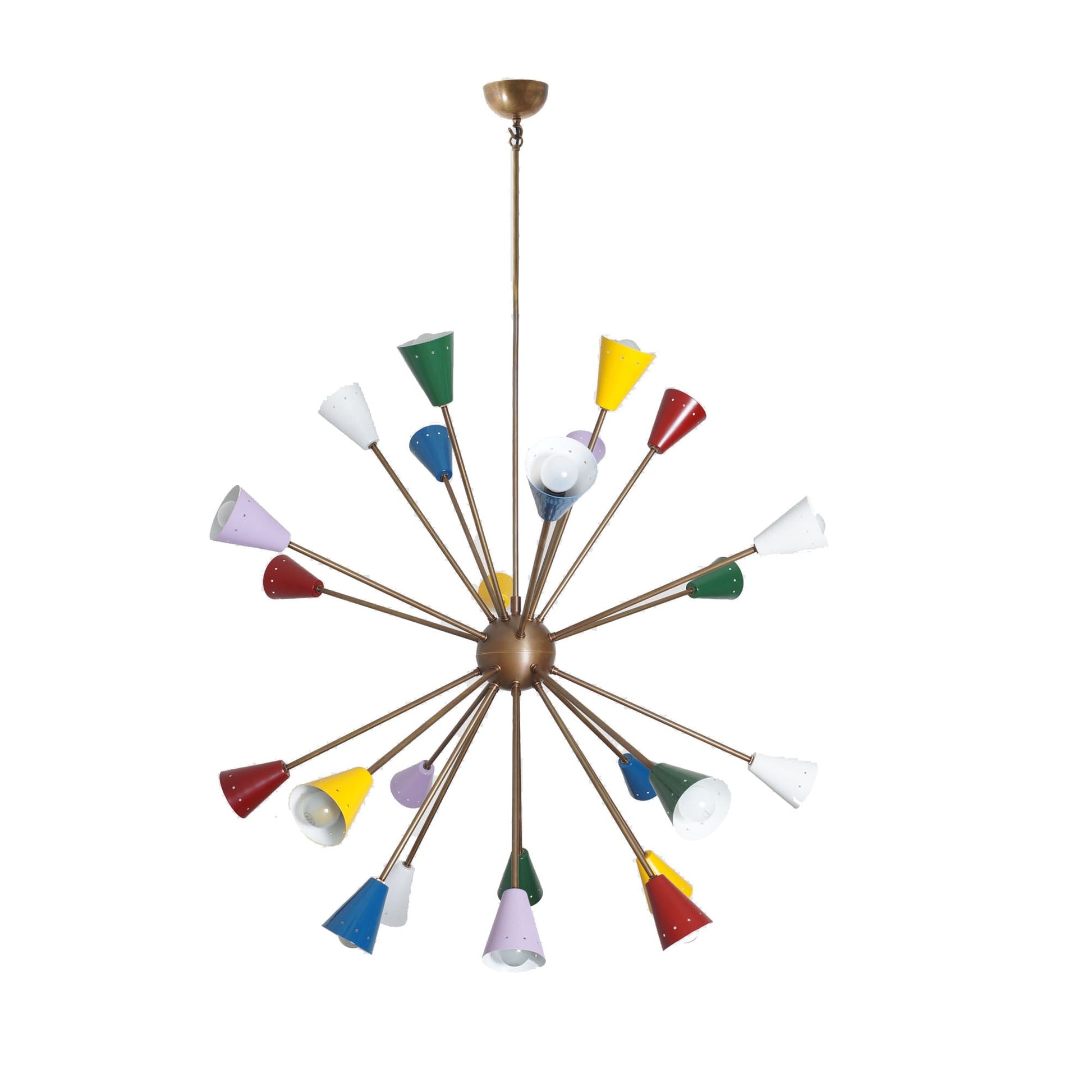 Stilnovo Multi Color Mid Century Italian Brass Sputnik Chandelier 40"D