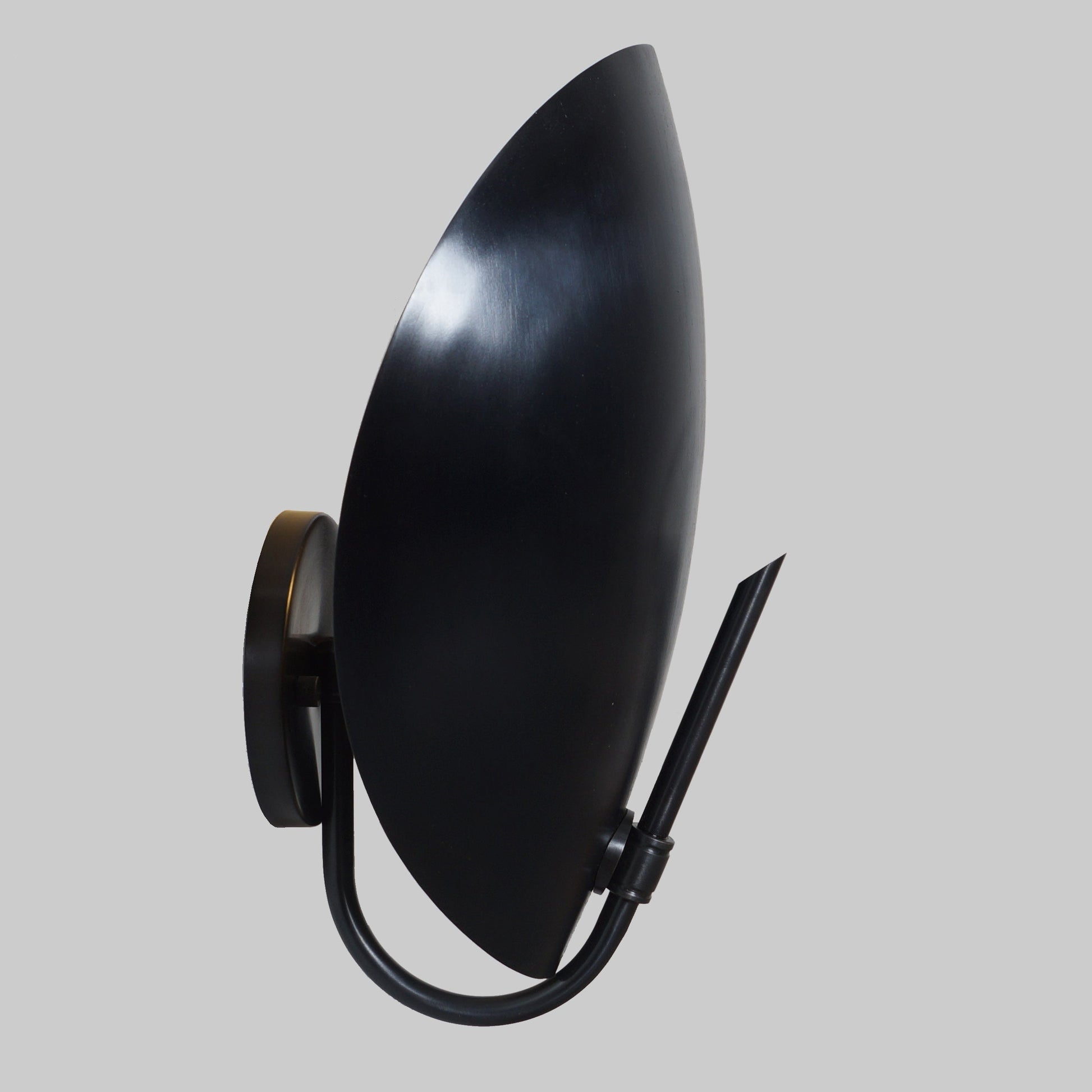 This lamp is perfect adjustable to suit your needs. The joints are solid brass and allow for great versatility in focus and pose. This design is strongly influenced by both French and Italian Mid-Century Modernism and features a distinctly beveled edge along the bottom of the shade.